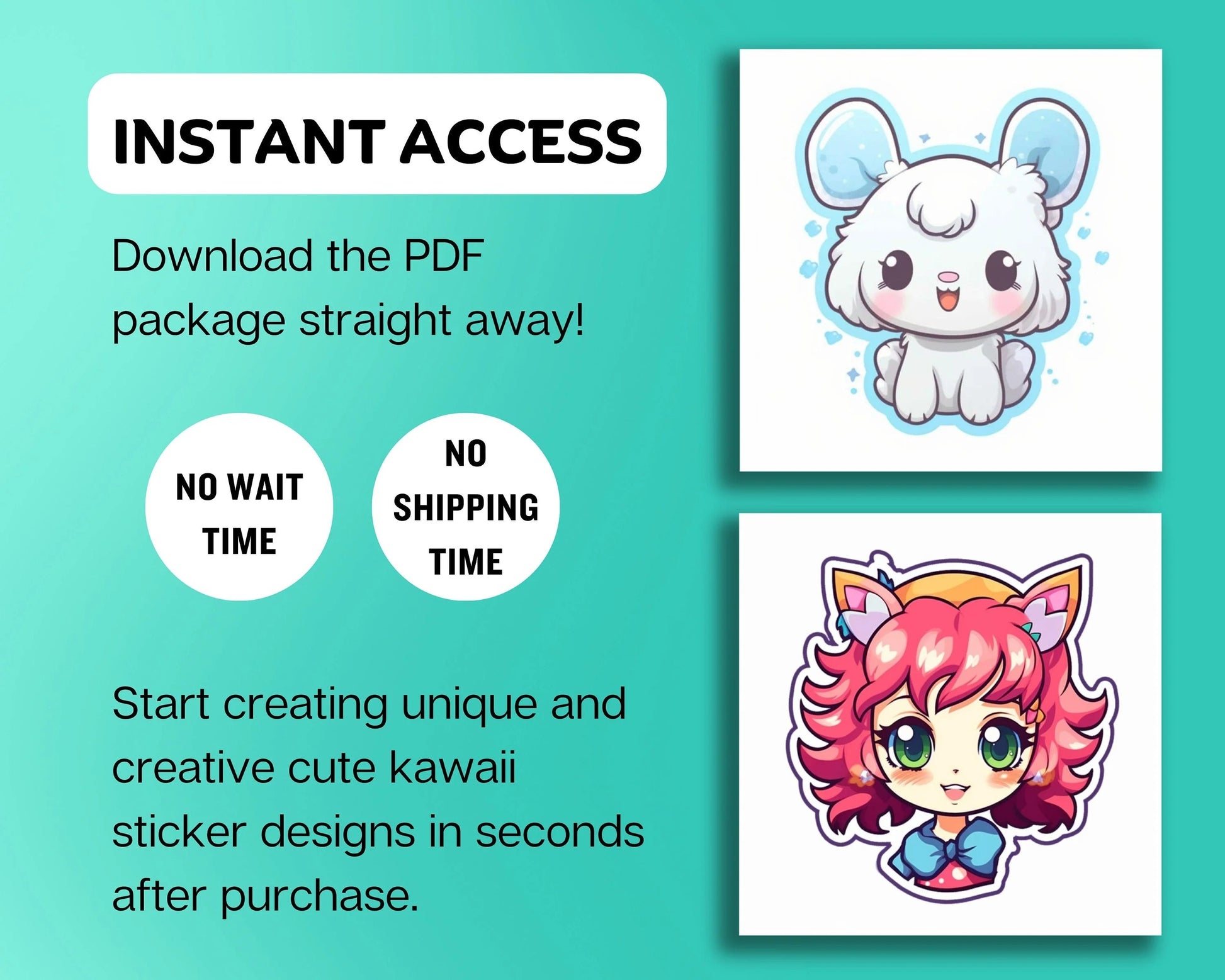 Get these 500+ Midjourney Prompts to help you create unimaginable AI art Cute Kawaii Sticker designs so you can speed up your design and lead times.